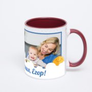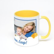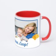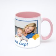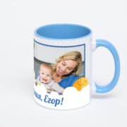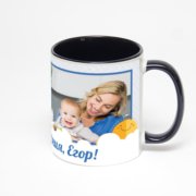 Керамическая кружка окрашенная синим внутри с синей ручкой с добавлением изображения в онлайн-редакторе макета.