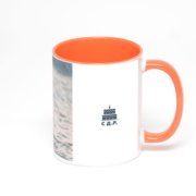 Керамическая кружка окрашенная синим внутри с синей ручкой с добавлением изображения в онлайн-редакторе макета.