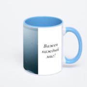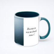 Керамическая кружка окрашенная внутри синим цветом с синей ручкой с нанесением изображения. Кружка с вашим изображением – это уникальный и качественный подарок. Создать её вы можете прямо сейчас в редакторе, добавляя фотографии, стикеры и надписи.