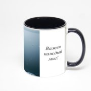 Керамическая кружка окрашенная синим внутри с синей ручкой с добавлением изображения в онлайн-редакторе макета.