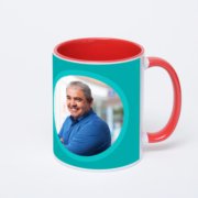 Керамическая кружка окрашенная синим внутри с синей ручкой с добавлением изображения в онлайн-редакторе макета.
