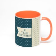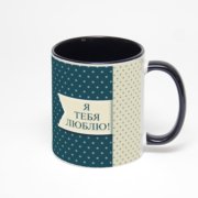 Керамическая кружка окрашенная синим внутри с синей ручкой с добавлением изображения в онлайн-редакторе макета.