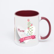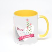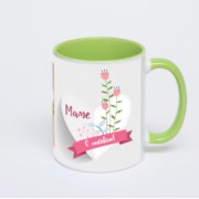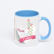 Керамическая кружка окрашенная синим внутри с синей ручкой с добавлением изображения в онлайн-редакторе макета.