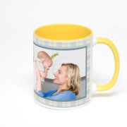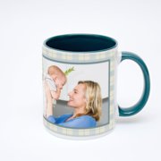 Синяя кружка с фотопечатью «Мамина радость, папина гордость»