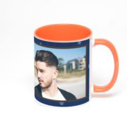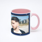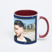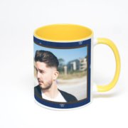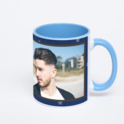 Керамическая кружка окрашенная синим внутри с синей ручкой с добавлением изображения в онлайн-редакторе макета.
