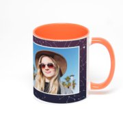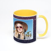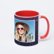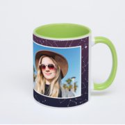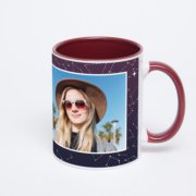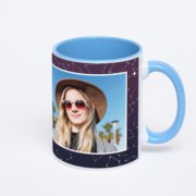 Керамическая кружка окрашенная синим внутри с синей ручкой с добавлением изображения в онлайн-редакторе макета.