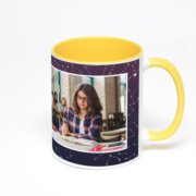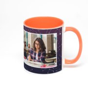Керамическая кружка окрашенная синим внутри с синей ручкой с добавлением изображения в онлайн-редакторе макета.
