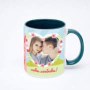Керамическая кружка окрашенная внутри синим цветом с синей ручкой с нанесением изображения. Кружка с вашим изображением – это уникальный и качественный подарок. Создать её вы можете прямо сейчас в редакторе, добавляя фотографии, стикеры и надписи.