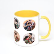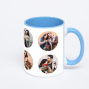 Керамическая кружка окрашенная синим внутри с синей ручкой с добавлением изображения в онлайн-редакторе макета.