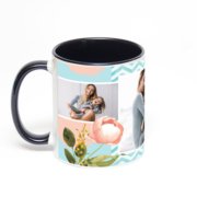Керамическая кружка окрашенная синим внутри с синей ручкой с добавлением изображения в онлайн-редакторе макета.