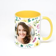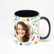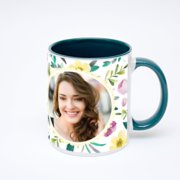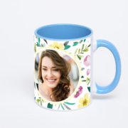 Керамическая кружка окрашенная синим внутри с синей ручкой с добавлением изображения в онлайн-редакторе макета.