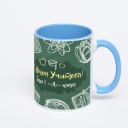 Синяя кружка с фотопечатью «С Днём учителя!»