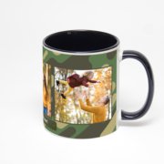 Керамическая кружка окрашенная синим внутри с синей ручкой с добавлением изображения в онлайн-редакторе макета.