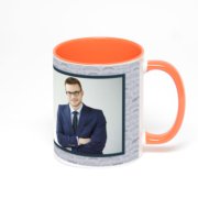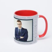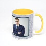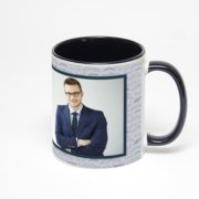 Керамическая кружка окрашенная синим внутри с синей ручкой с добавлением изображения в онлайн-редакторе макета.