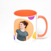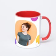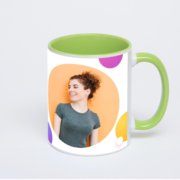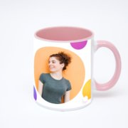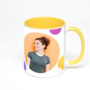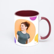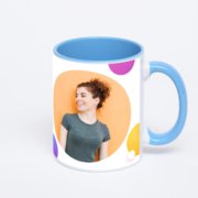 Керамическая кружка окрашенная синим внутри с синей ручкой с добавлением изображения в онлайн-редакторе макета.