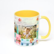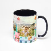 Керамическая кружка окрашенная синим внутри с синей ручкой с добавлением изображения в онлайн-редакторе макета.