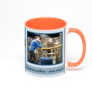 Керамическая кружка окрашенная синим внутри с синей ручкой с добавлением изображения в онлайн-редакторе макета.