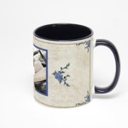 Керамическая кружка окрашенная синим внутри с синей ручкой с добавлением изображения в онлайн-редакторе макета.