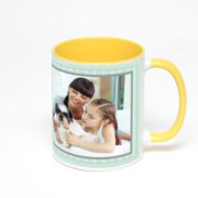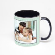Керамическая кружка окрашенная синим внутри с синей ручкой с добавлением изображения в онлайн-редакторе макета.