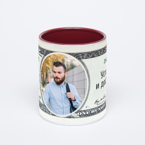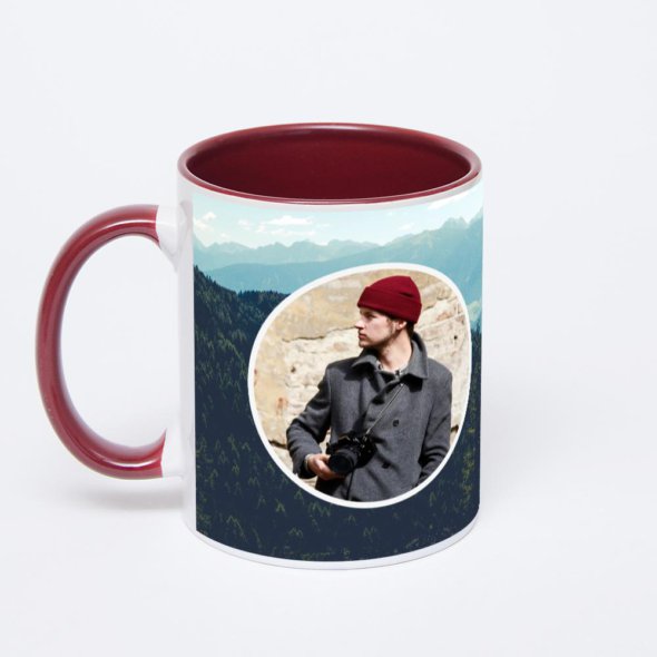 Бордовая кружка с фотопечатью