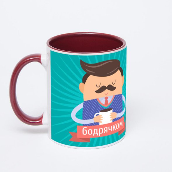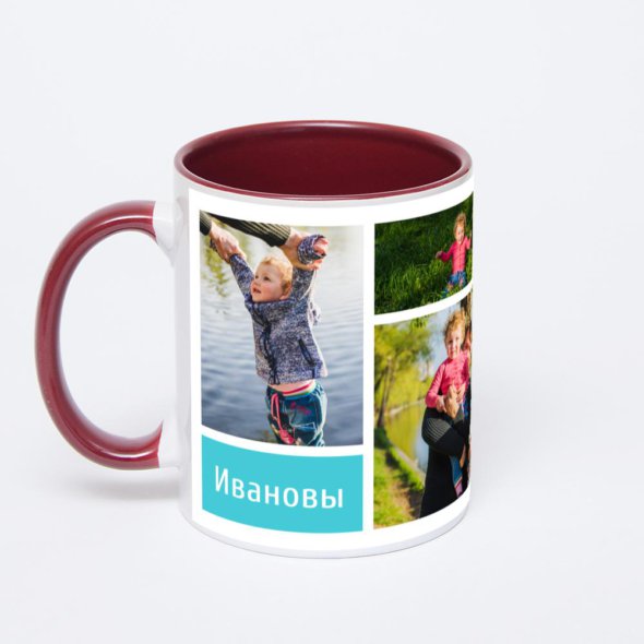 Керамическая кружка окрашенная внутри бордовым цветом с бордовой ручкой с нанесением изображения. Кружка с вашим изображением – это уникальный и качественный подарок. Создать её вы можете прямо сейчас в редакторе, добавляя фотографии, стикеры и надписи.