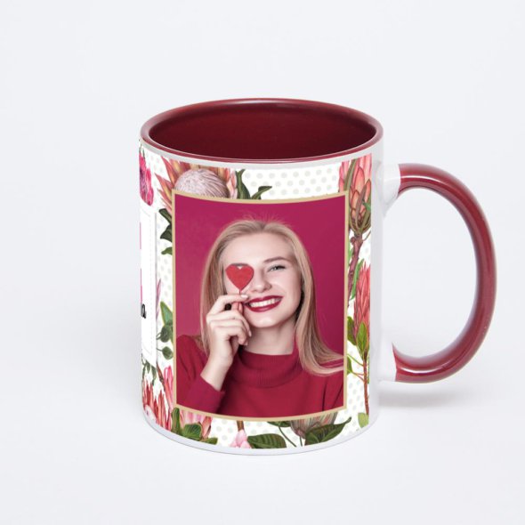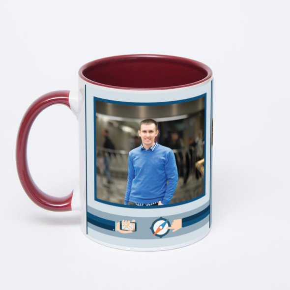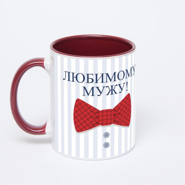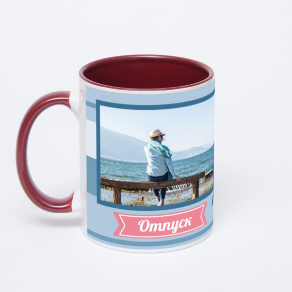 Керамическая кружка окрашенная внутри бордовым цветом с бордовой ручкой с нанесением изображения. Кружка с вашим изображением – это уникальный и качественный подарок. Создать её вы можете прямо сейчас в редакторе, добавляя фотографии, стикеры и надписи.