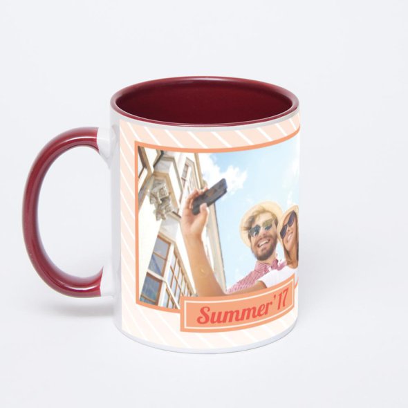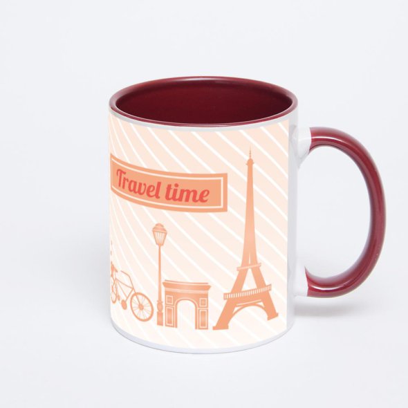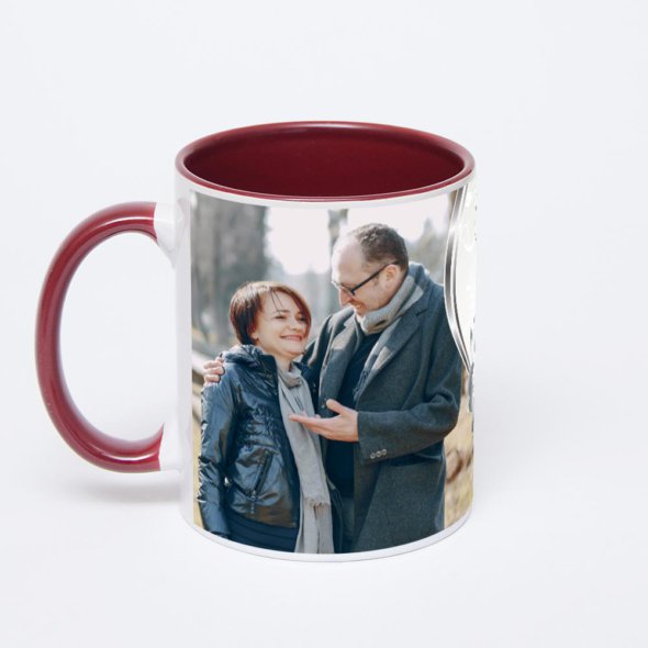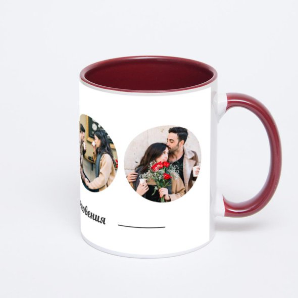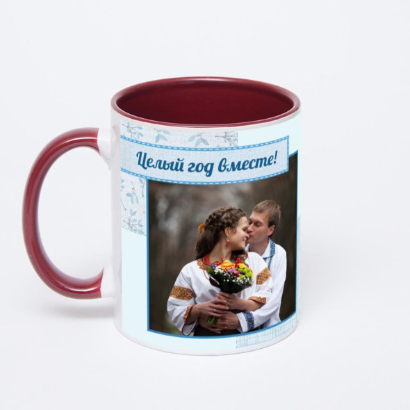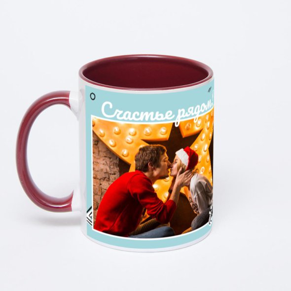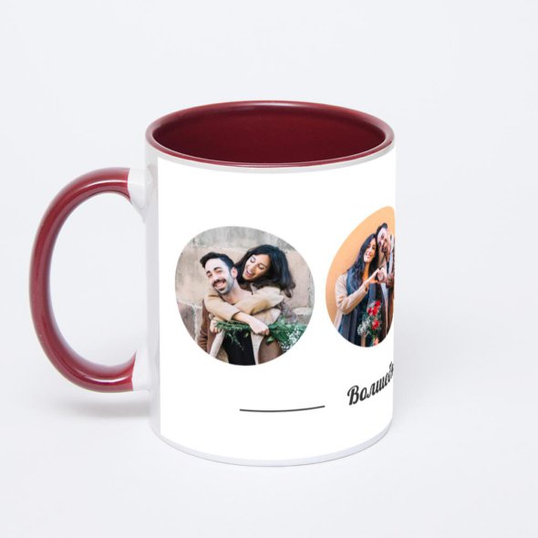 Керамическая кружка окрашенная внутри бордовым цветом с бордовой ручкой с нанесением изображения. Кружка с вашим изображением – это уникальный и качественный подарок. Создать её вы можете прямо сейчас в редакторе, добавляя фотографии, стикеры и надписи.