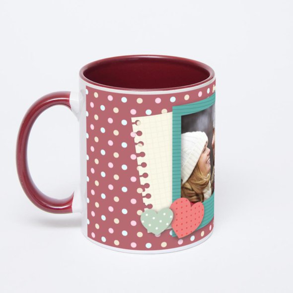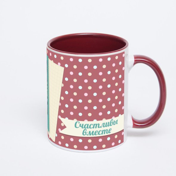 Керамическая кружка окрашенная внутри бордовым цветом с бордовой ручкой с нанесением изображения. Кружка с вашим изображением – это уникальный и качественный подарок. Создать её вы можете прямо сейчас в редакторе, добавляя фотографии, стикеры и надписи.