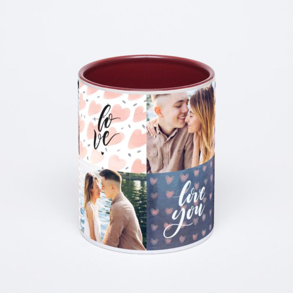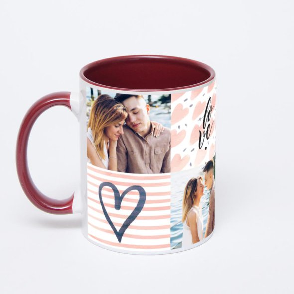 Керамическая кружка окрашенная внутри бордовым цветом с бордовой ручкой с нанесением изображения. Кружка с вашим изображением – это уникальный и качественный подарок. Создать её вы можете прямо сейчас в редакторе, добавляя фотографии, стикеры и надписи.