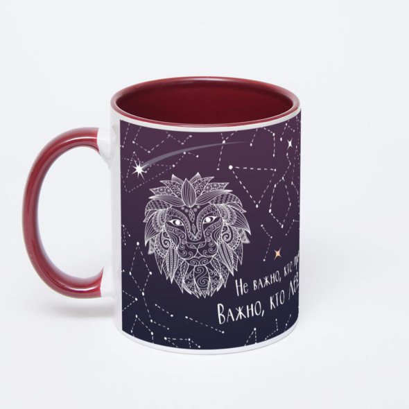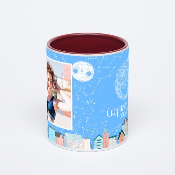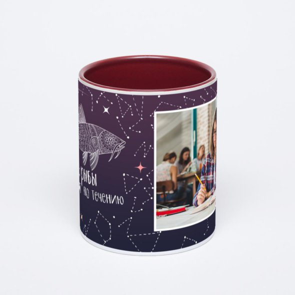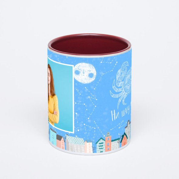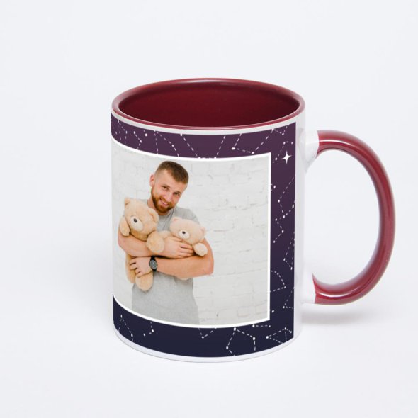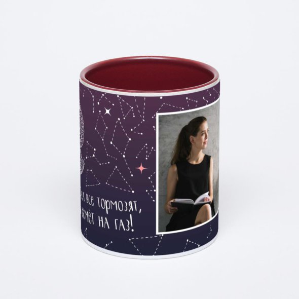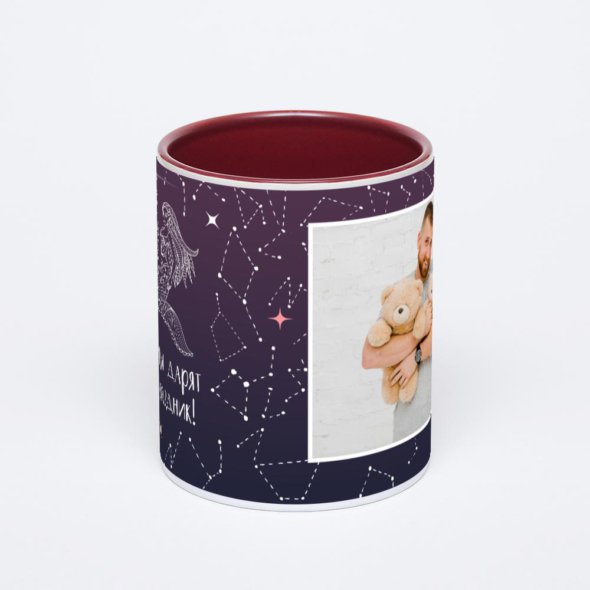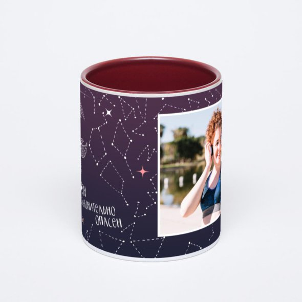 Керамическая кружка окрашенная внутри бордовым цветом с бордовой ручкой с нанесением изображения. Кружка с вашим изображением – это уникальный и качественный подарок. Создать её вы можете прямо сейчас в редакторе, добавляя фотографии, стикеры и надписи.