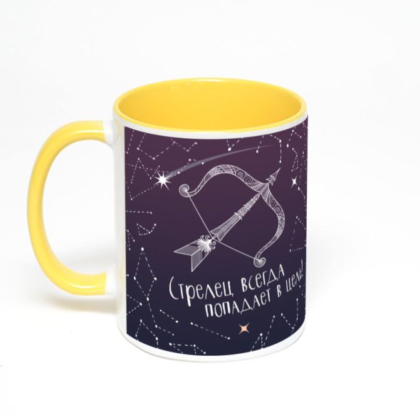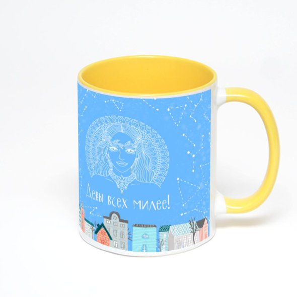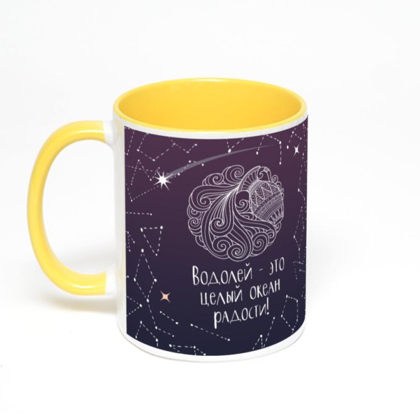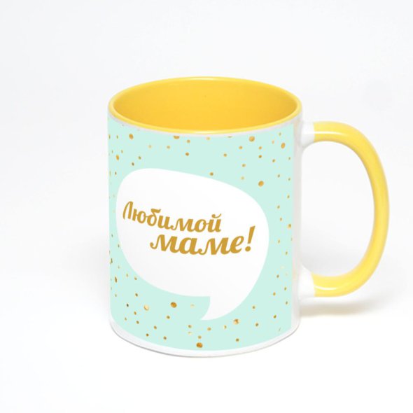 Керамическая кружка окрашенная желтым внутри с желтой ручкой с нанесением изображения. Кружка с вашим изображением – это уникальный и качественный подарок. Создать её вы можете прямо сейчас в редакторе, добавляя фотографии, стикеры и надписи.