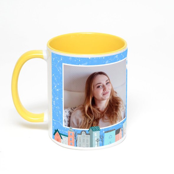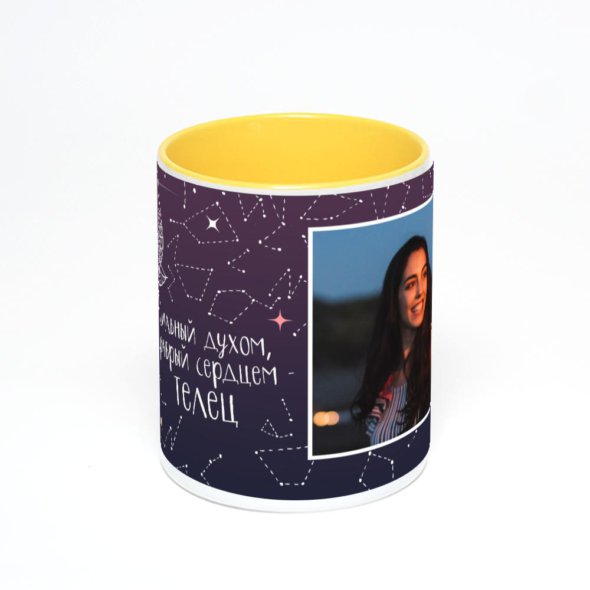 Желтая кружка с фотопечатью