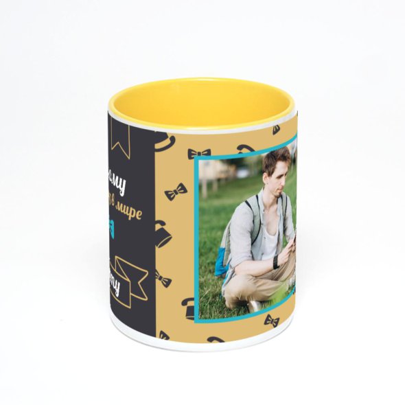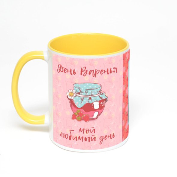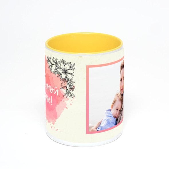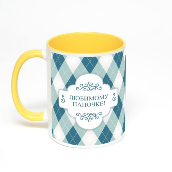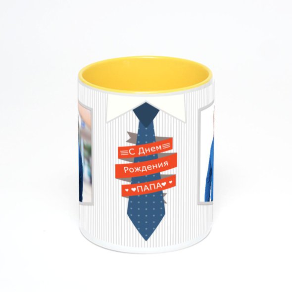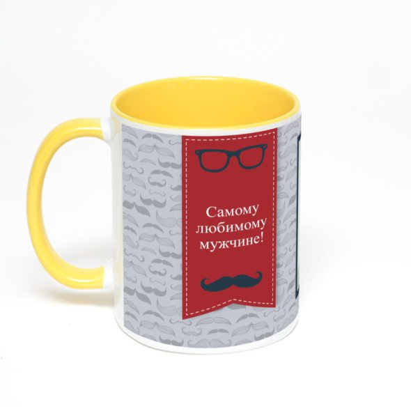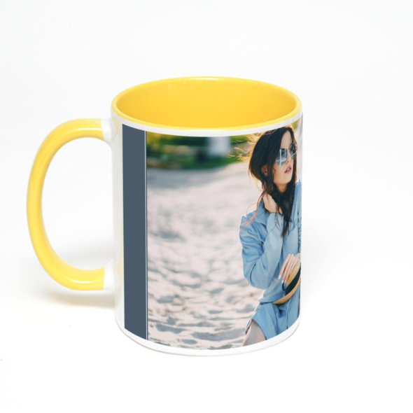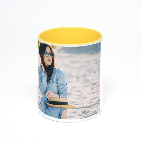 Керамическая кружка окрашенная желтым внутри с желтой ручкой с нанесением изображения. Кружка с вашим изображением – это уникальный и качественный подарок. Создать её вы можете прямо сейчас в редакторе, добавляя фотографии, стикеры и надписи.