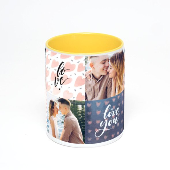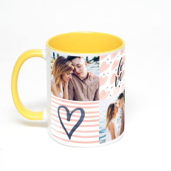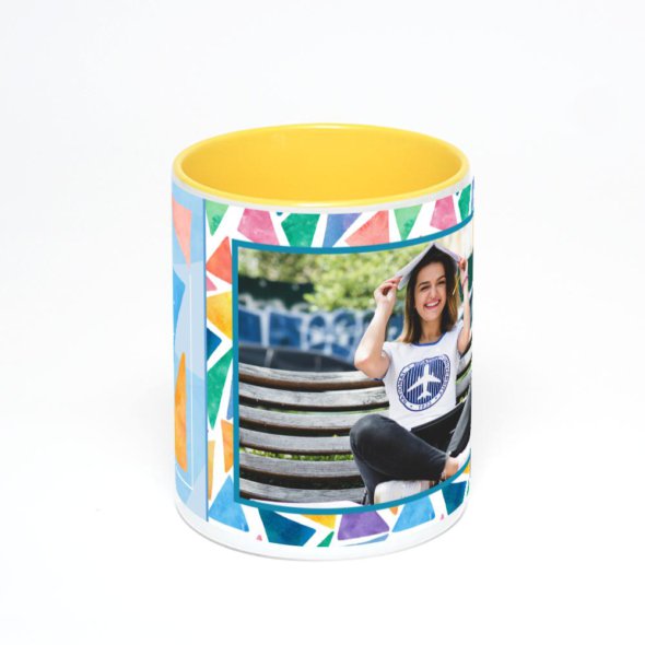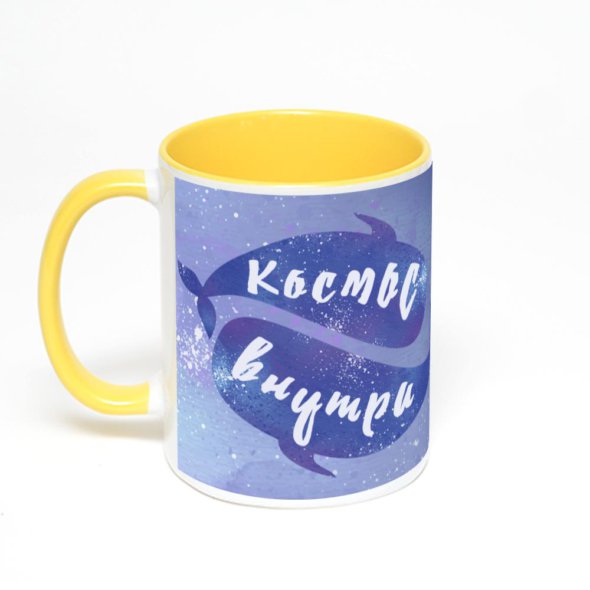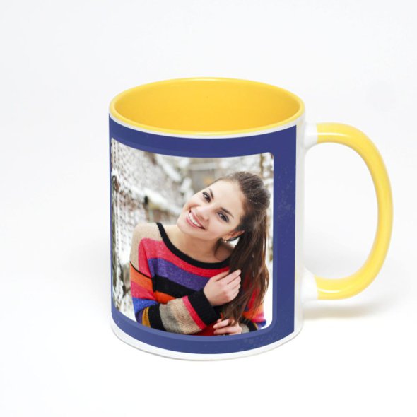 Керамическая кружка окрашенная желтым внутри с желтой ручкой с нанесением изображения. Кружка с вашим изображением – это уникальный и качественный подарок. Создать её вы можете прямо сейчас в редакторе, добавляя фотографии, стикеры и надписи.