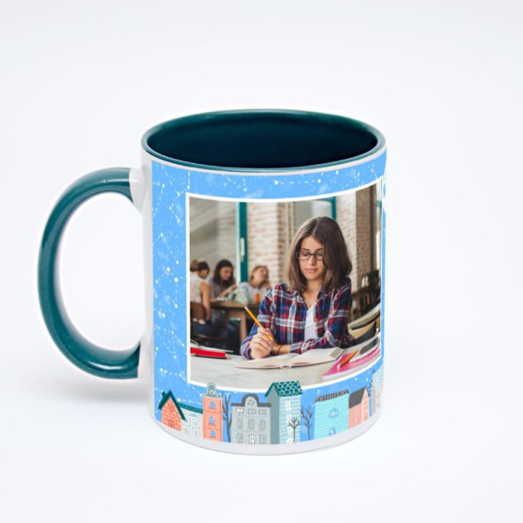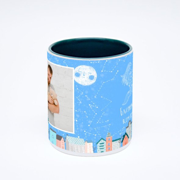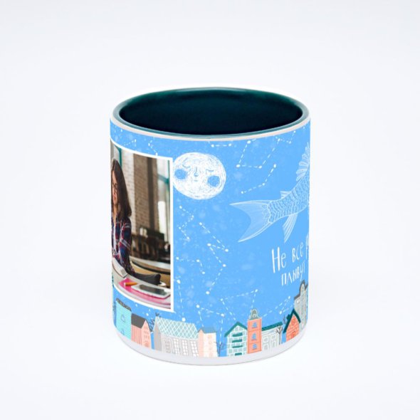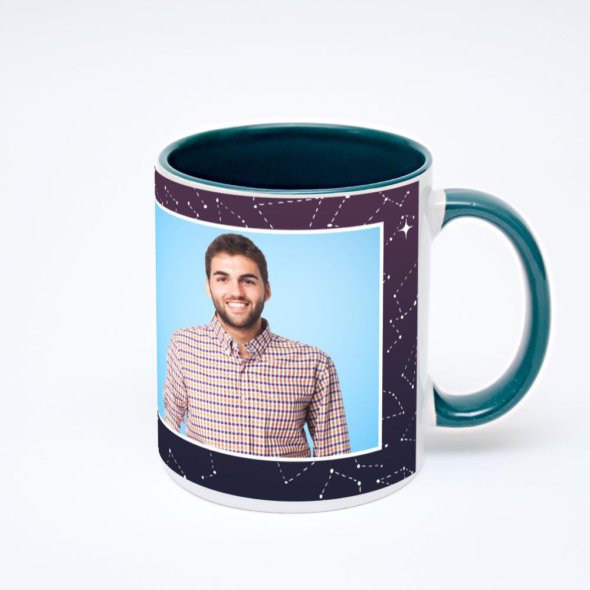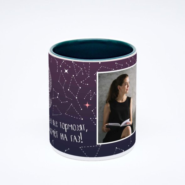 Керамическая кружка окрашенная зелёным внутри с зелёной ручкой с нанесением изображения. Кружка с вашим изображением – это уникальный и качественный подарок. Создать её вы можете прямо сейчас в редакторе, добавляя фотографии, стикеры и надписи.