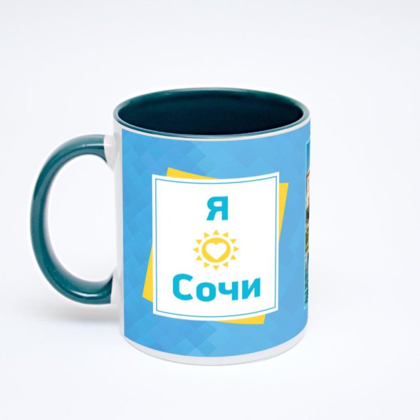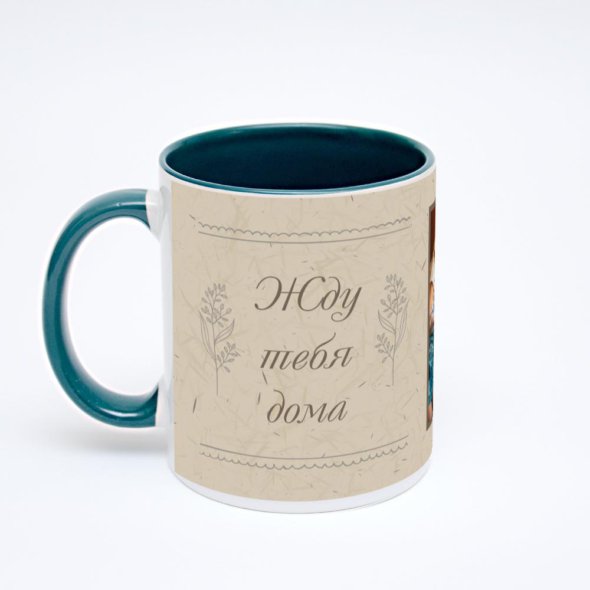 Керамическая кружка окрашенная зелёным внутри с зелёной ручкой с нанесением изображения. Кружка с вашим изображением – это уникальный и качественный подарок. Создать её вы можете прямо сейчас в редакторе, добавляя фотографии, стикеры и надписи.