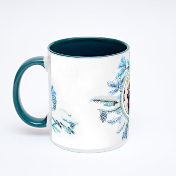 Керамическая кружка окрашенная зелёным внутри с зелёной ручкой с нанесением изображения. Кружка с вашим изображением – это уникальный и качественный подарок. Создать её вы можете прямо сейчас в редакторе, добавляя фотографии, стикеры и надписи.