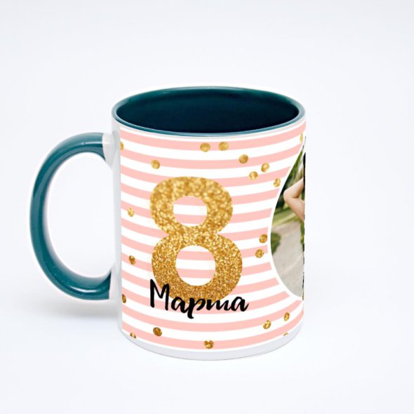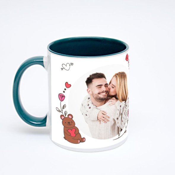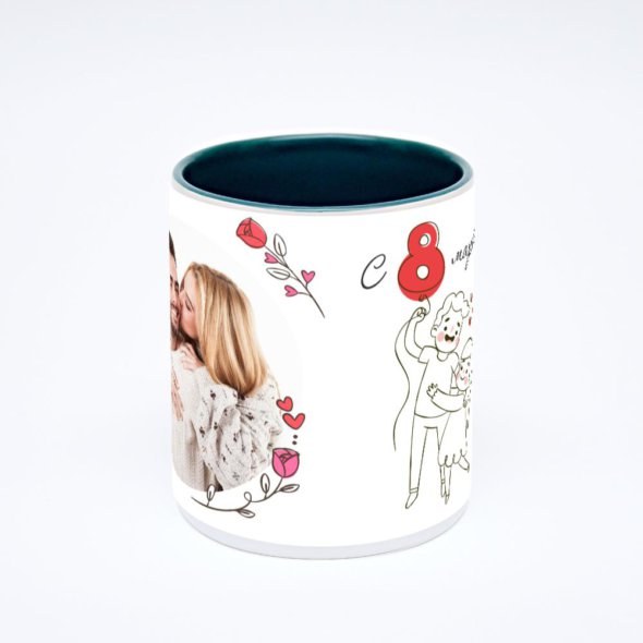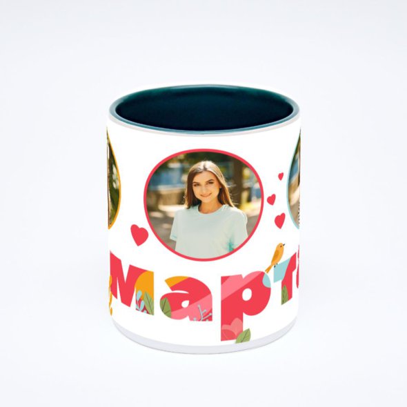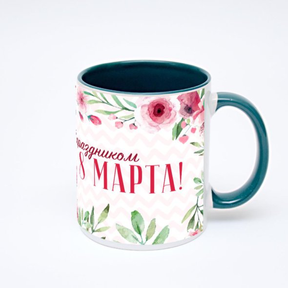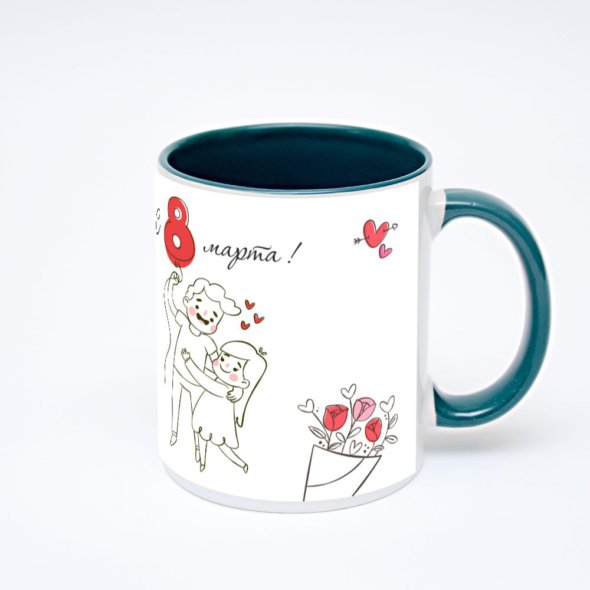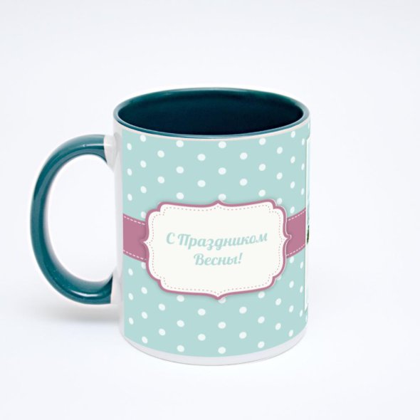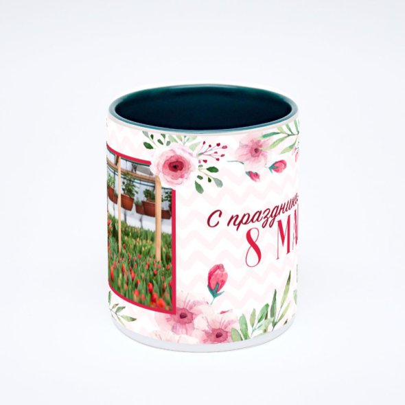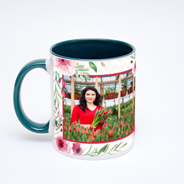 Керамическая кружка окрашенная зелёным внутри с зелёной ручкой с нанесением изображения. Кружка с вашим изображением – это уникальный и качественный подарок. Создать её вы можете прямо сейчас в редакторе, добавляя фотографии, стикеры и надписи.
