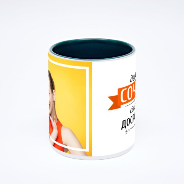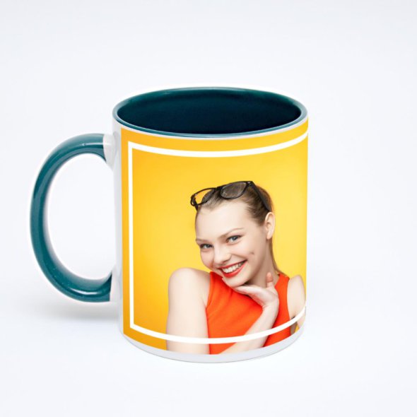 Керамическая кружка окрашенная зелёным внутри с зелёной ручкой с нанесением изображения. Кружка с вашим изображением – это уникальный и качественный подарок. Создать её вы можете прямо сейчас в редакторе, добавляя фотографии, стикеры и надписи.