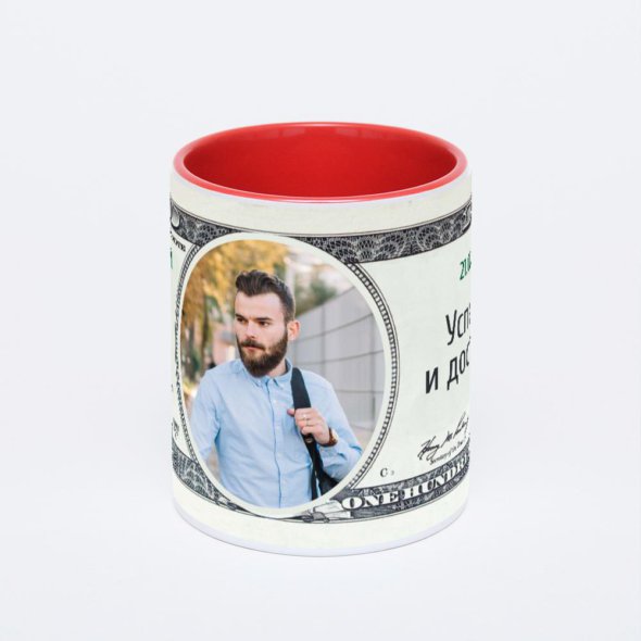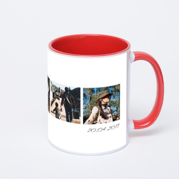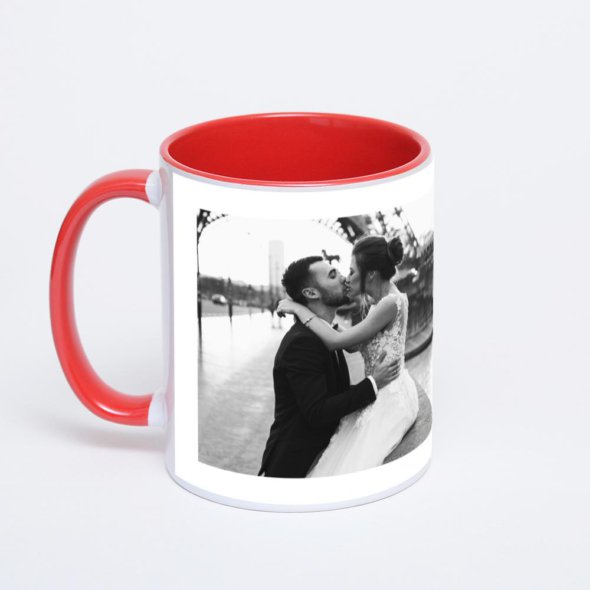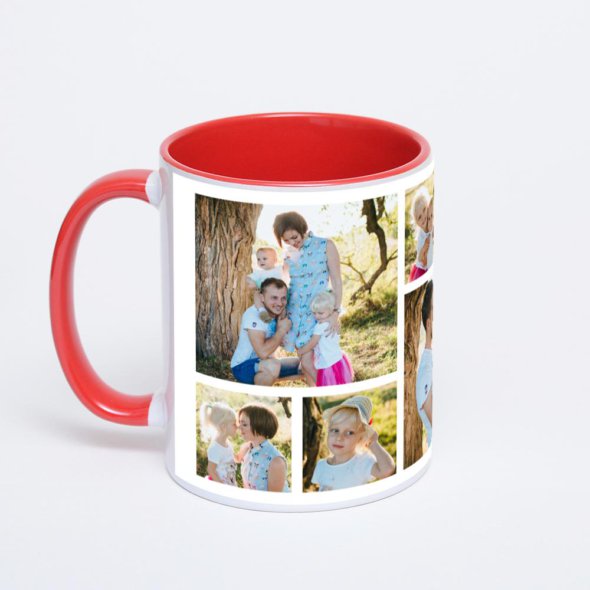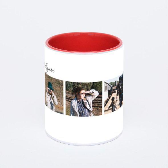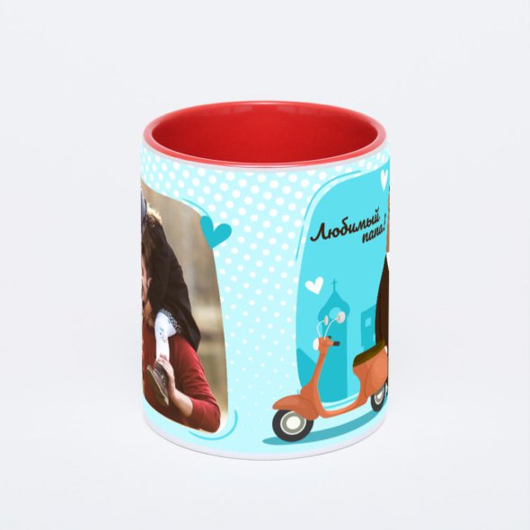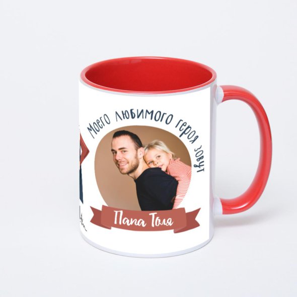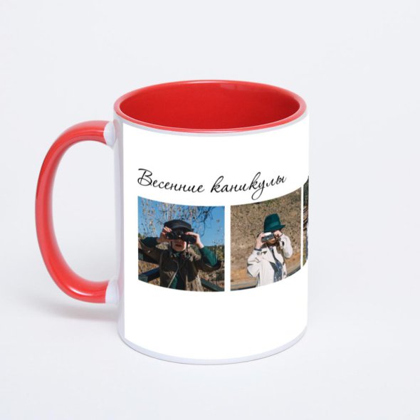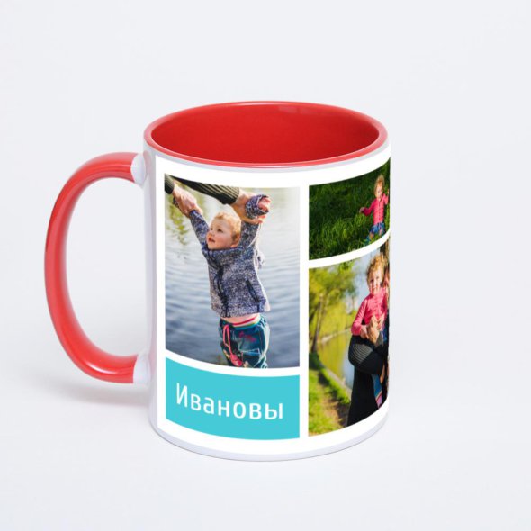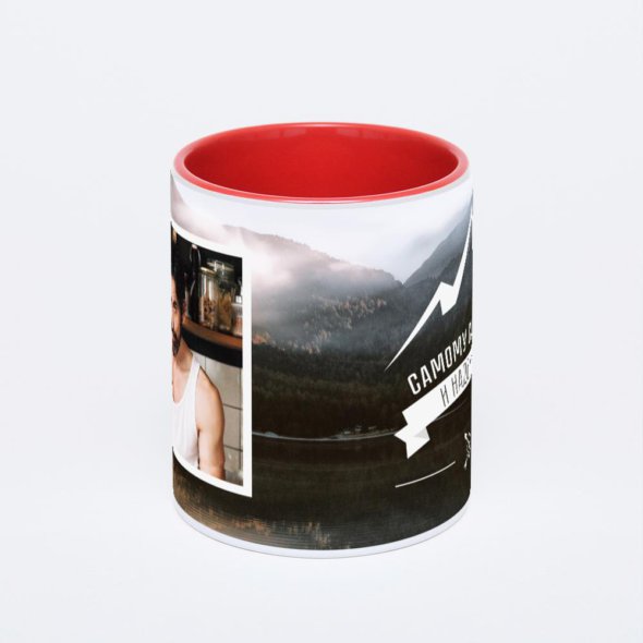 Керамическая кружка окрашенная красным внутри с красной ручкой с нанесением изображения. Кружка с вашим изображением – это уникальный и качественный подарок. Создать её вы можете прямо сейчас в редакторе, добавляя фотографии, стикеры и надписи.