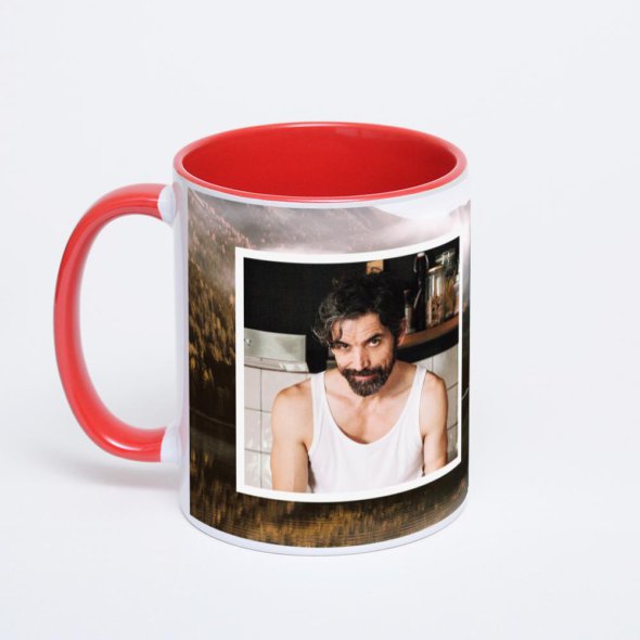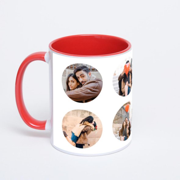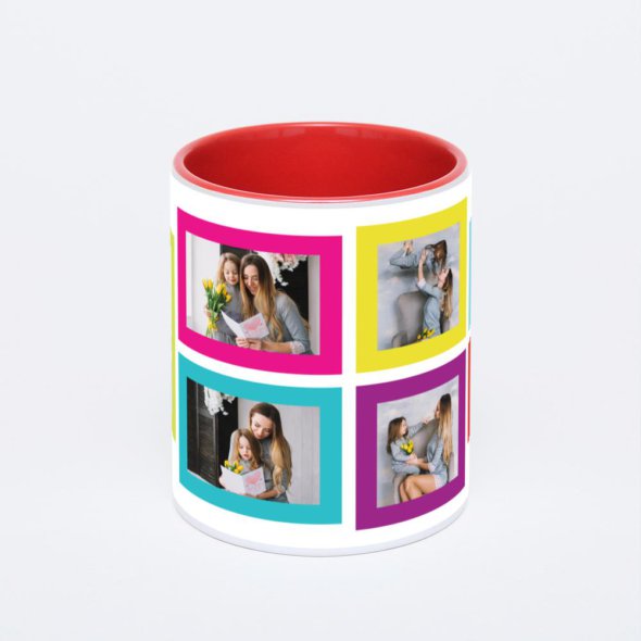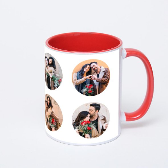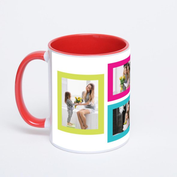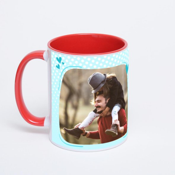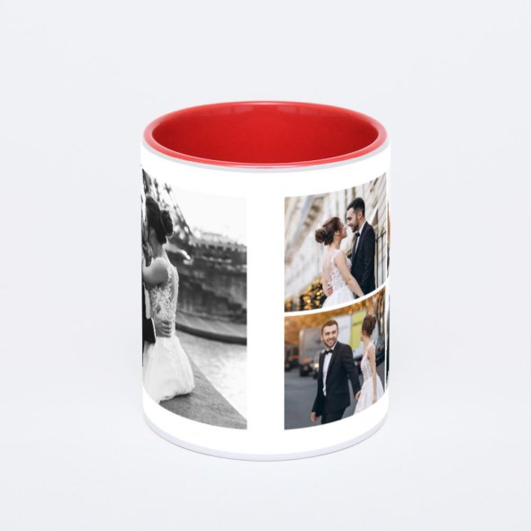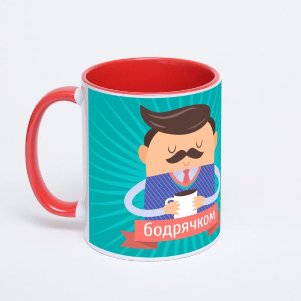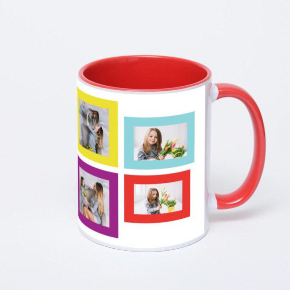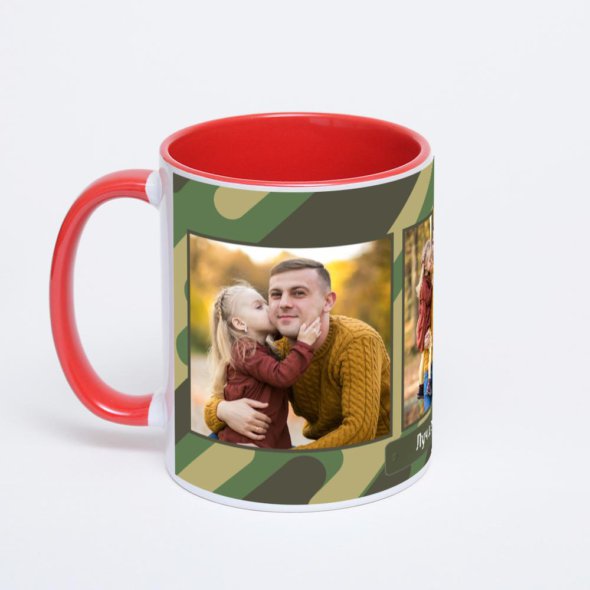Керамическая кружка окрашенная красным внутри с красной ручкой с нанесением изображения. Кружка с вашим изображением – это уникальный и качественный подарок. Создать её вы можете прямо сейчас в редакторе, добавляя фотографии, стикеры и надписи.