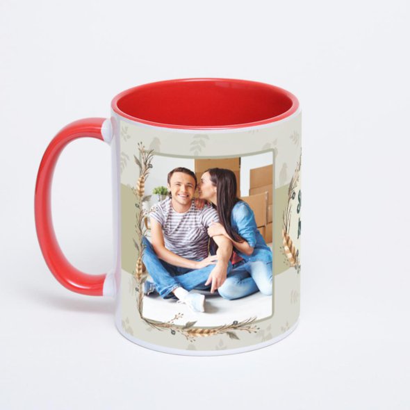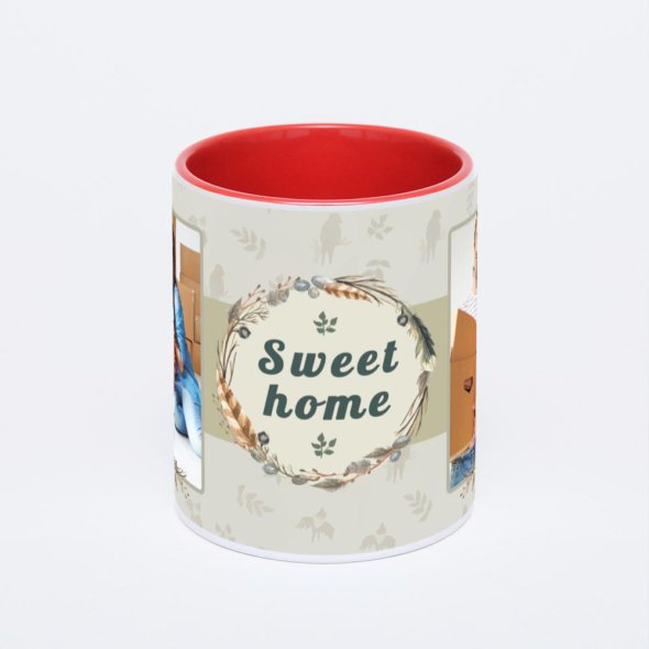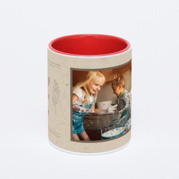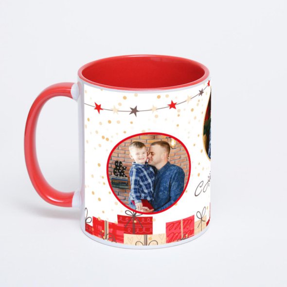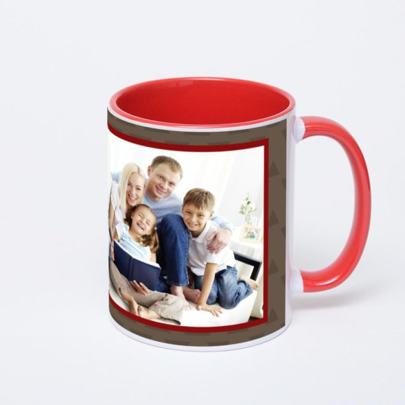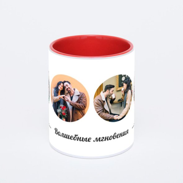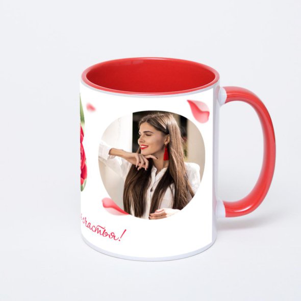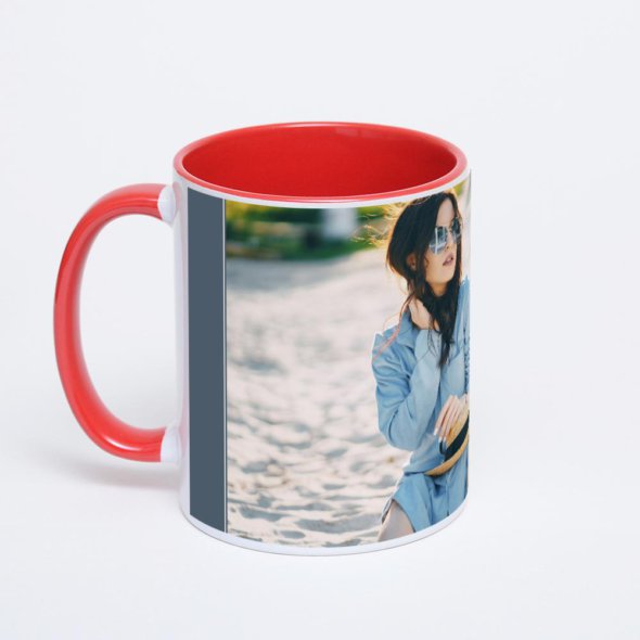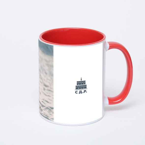 Керамическая кружка окрашенная красным внутри с красной ручкой с нанесением изображения. Кружка с вашим изображением – это уникальный и качественный подарок. Создать её вы можете прямо сейчас в редакторе, добавляя фотографии, стикеры и надписи.