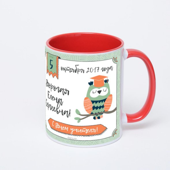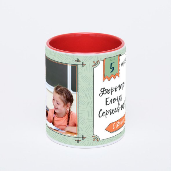 Керамическая кружка окрашенная красным внутри с красной ручкой с нанесением изображения. Кружка с вашим изображением – это уникальный и качественный подарок. Создать её вы можете прямо сейчас в редакторе, добавляя фотографии, стикеры и надписи.