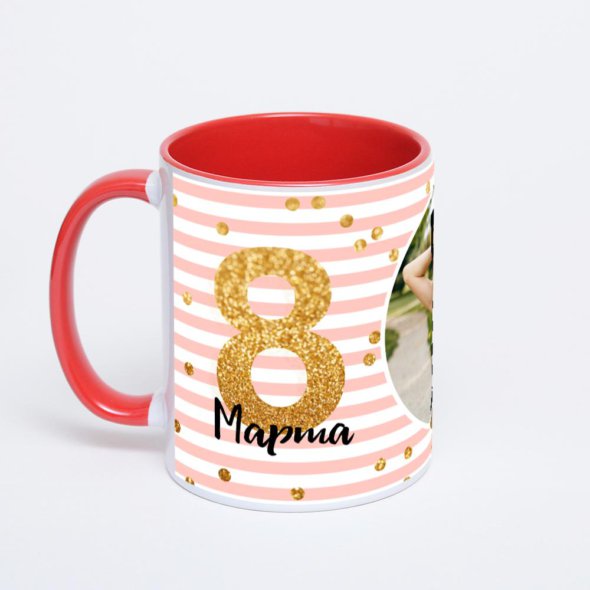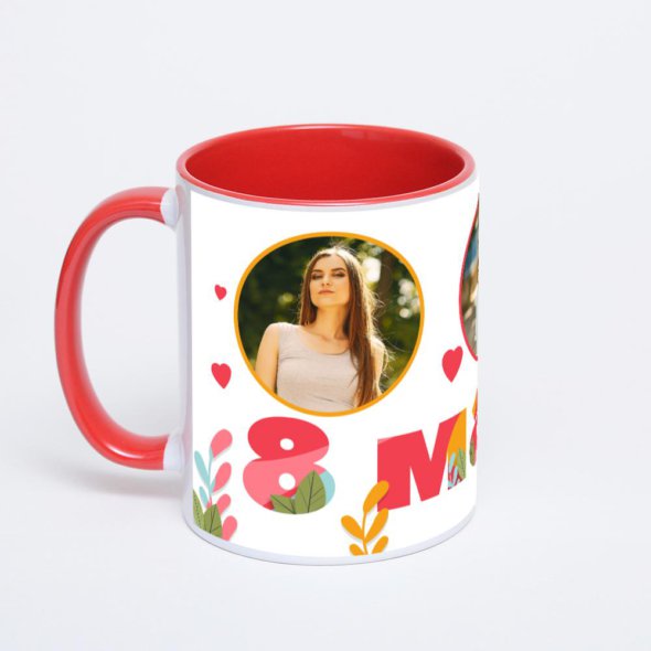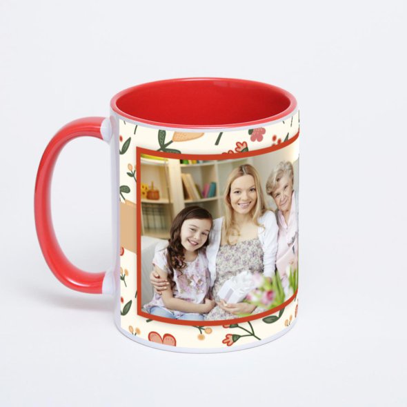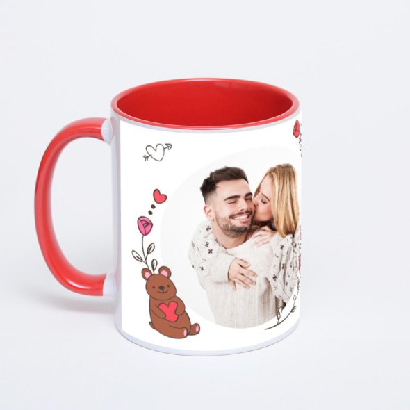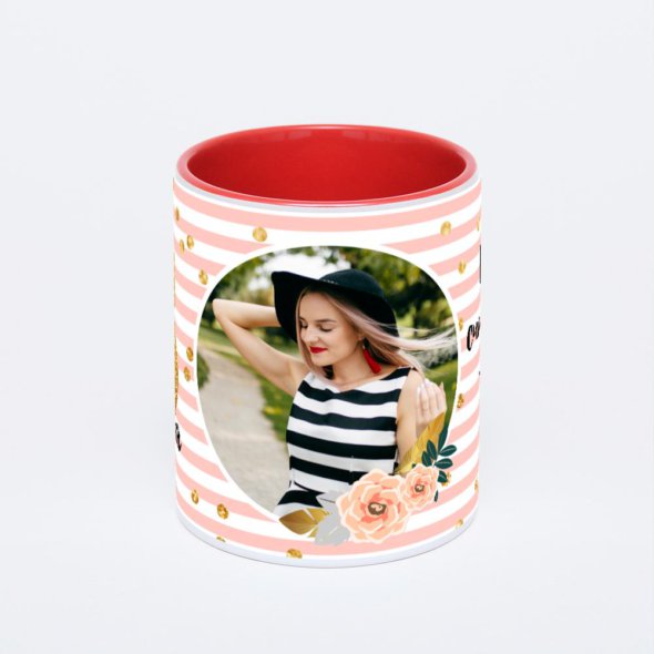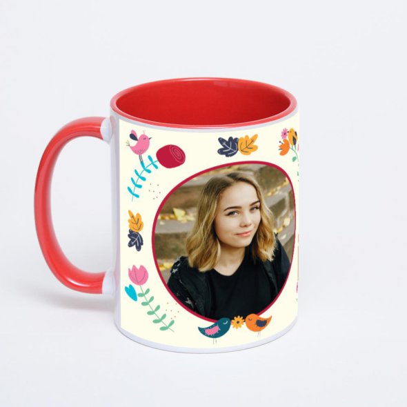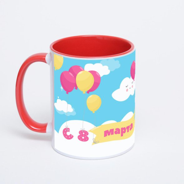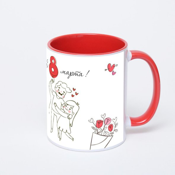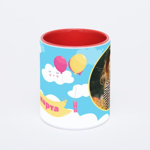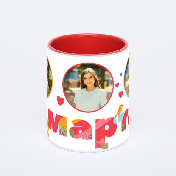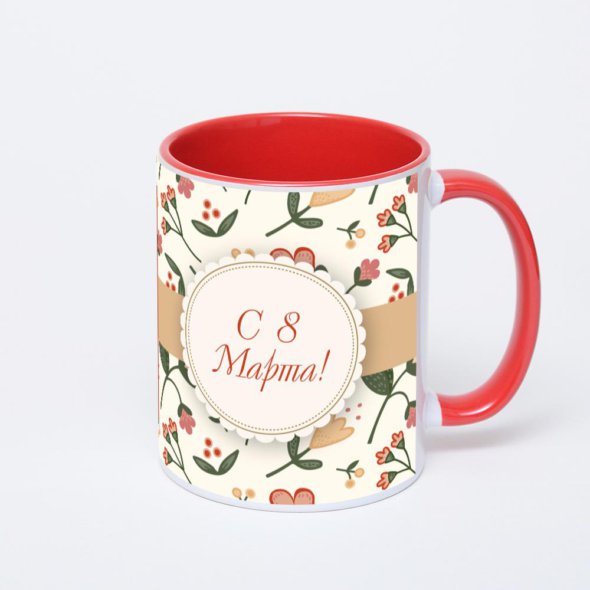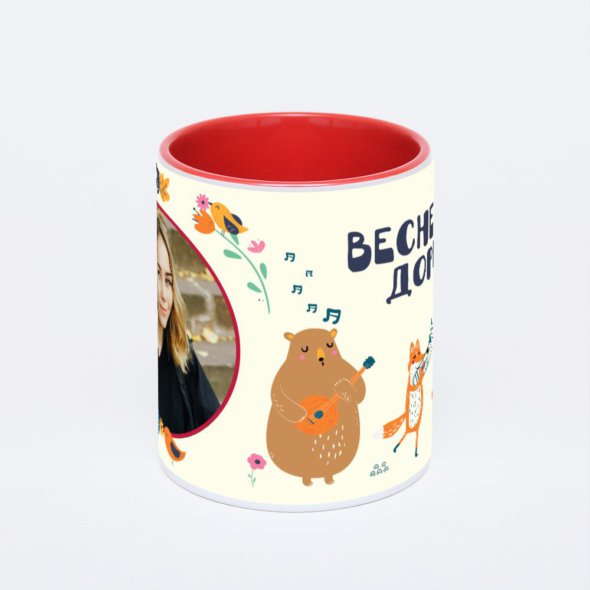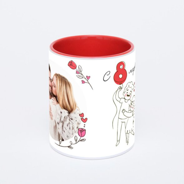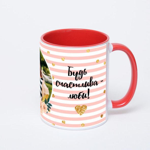 Керамическая кружка окрашенная красным внутри с красной ручкой с нанесением изображения. Кружка с вашим изображением – это уникальный и качественный подарок. Создать её вы можете прямо сейчас в редакторе, добавляя фотографии, стикеры и надписи.