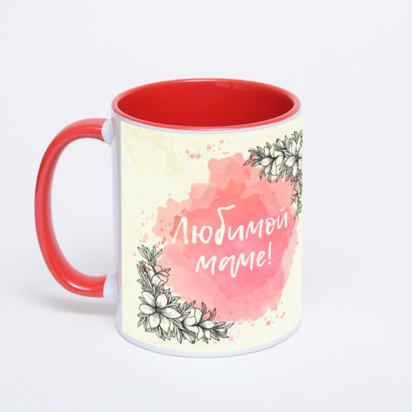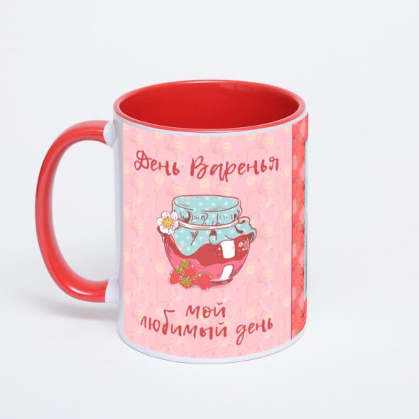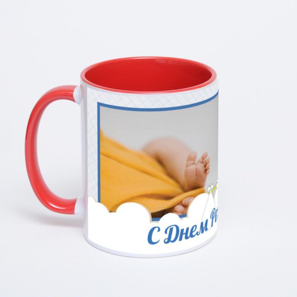 Керамическая кружка окрашенная красным внутри с красной ручкой с нанесением изображения. Кружка с вашим изображением – это уникальный и качественный подарок. Создать её вы можете прямо сейчас в редакторе, добавляя фотографии, стикеры и надписи.
