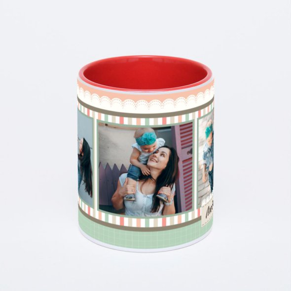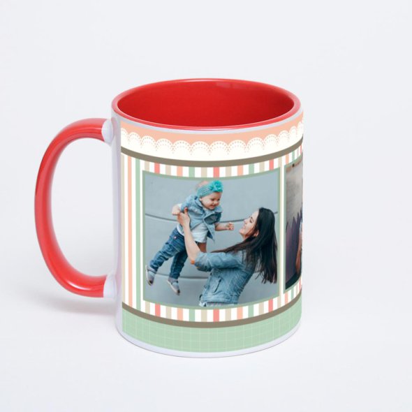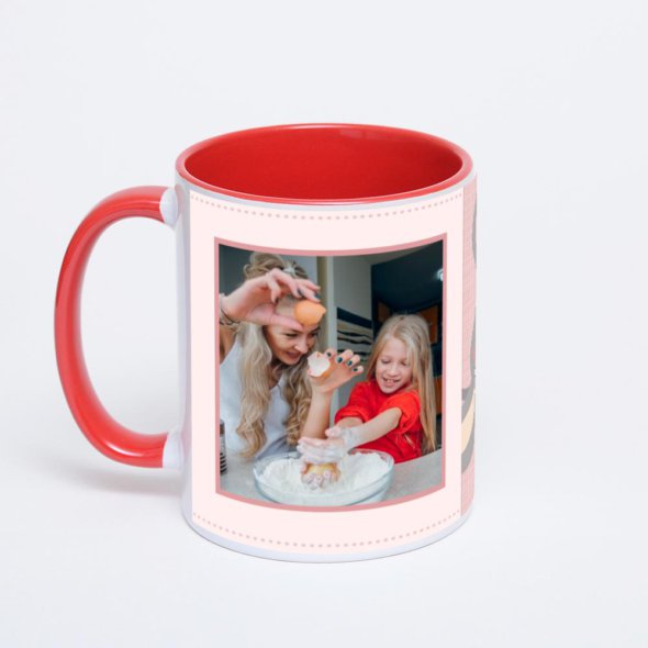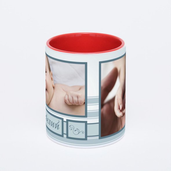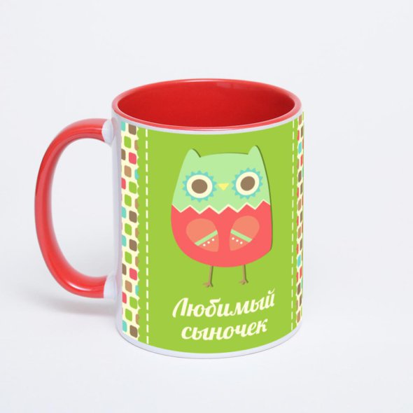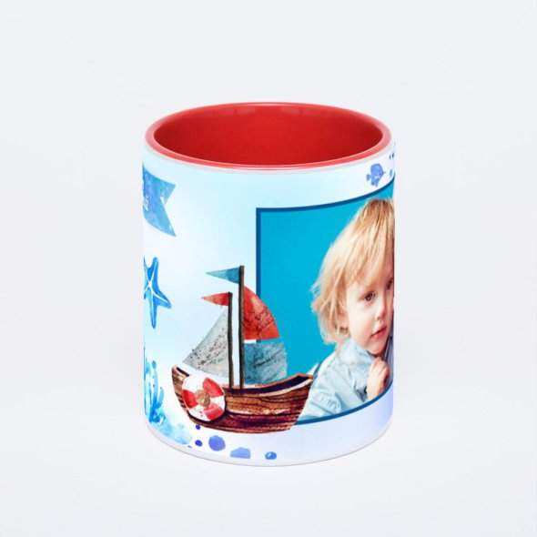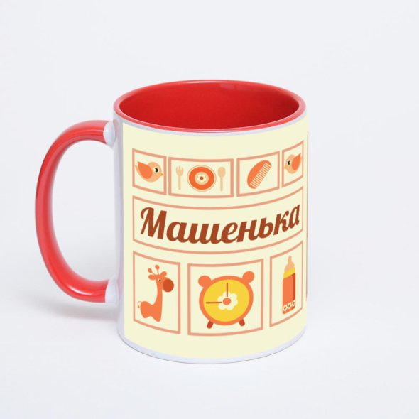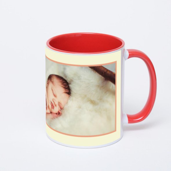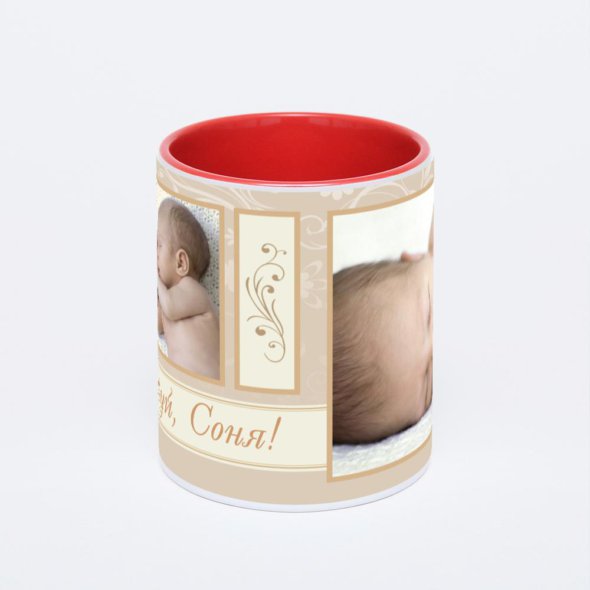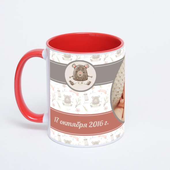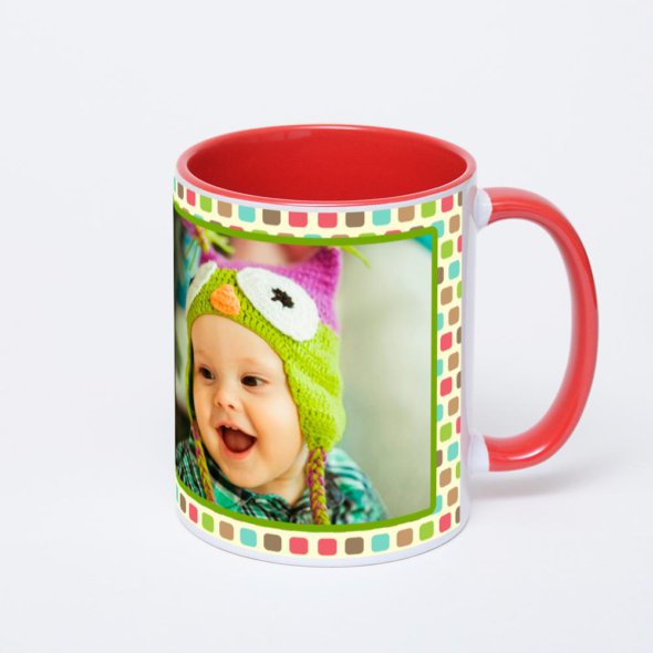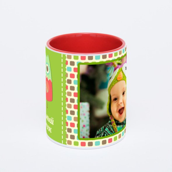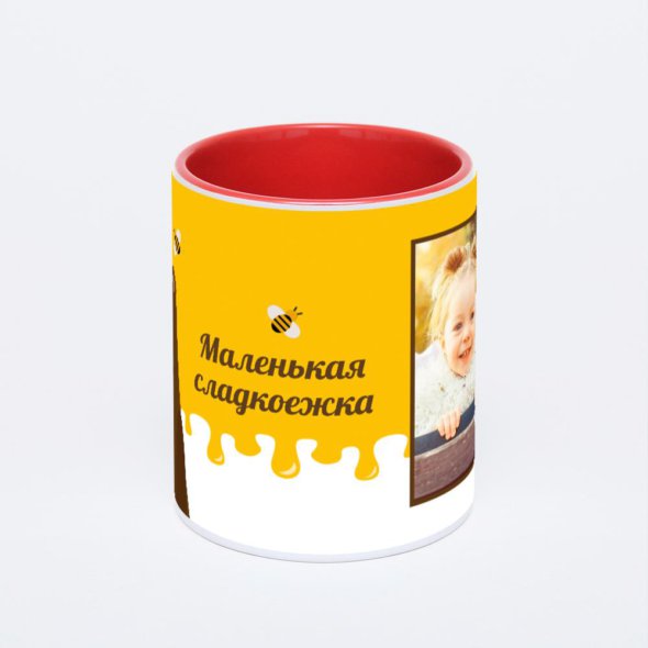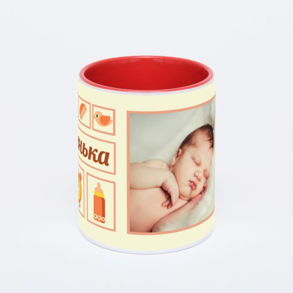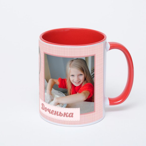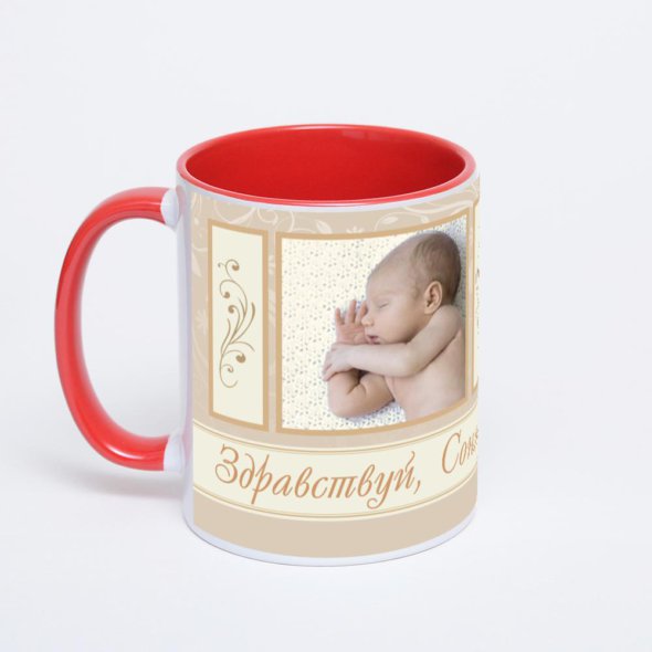Керамическая кружка окрашенная красным внутри с красной ручкой с нанесением изображения. Кружка с вашим изображением – это уникальный и качественный подарок. Создать её вы можете прямо сейчас в редакторе, добавляя фотографии, стикеры и надписи.