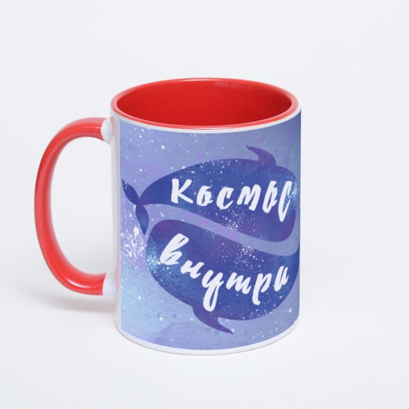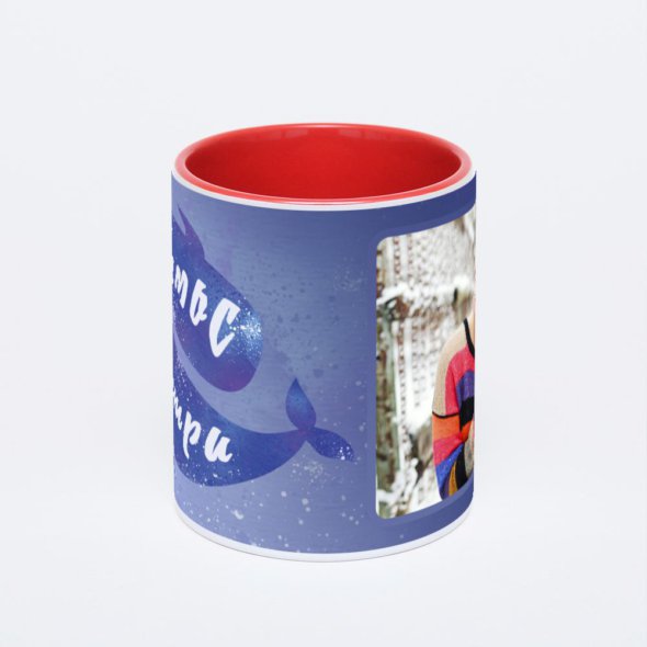 Керамическая кружка окрашенная красным внутри с красной ручкой с нанесением изображения. Кружка с вашим изображением – это уникальный и качественный подарок. Создать её вы можете прямо сейчас в редакторе, добавляя фотографии, стикеры и надписи.
