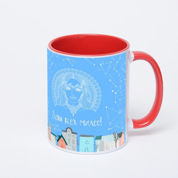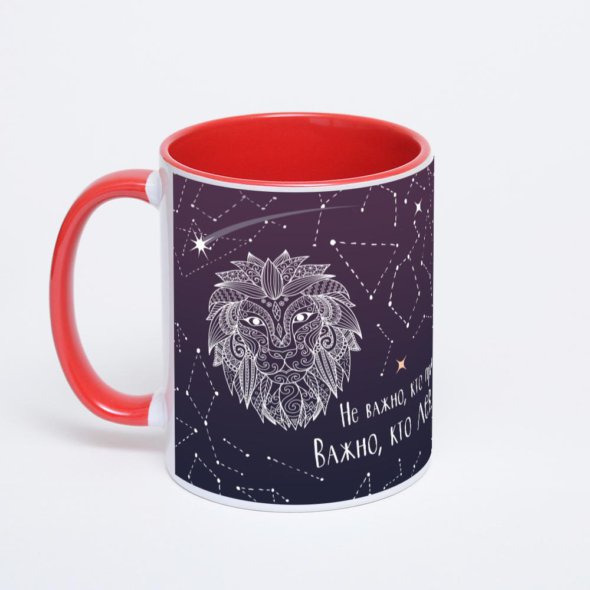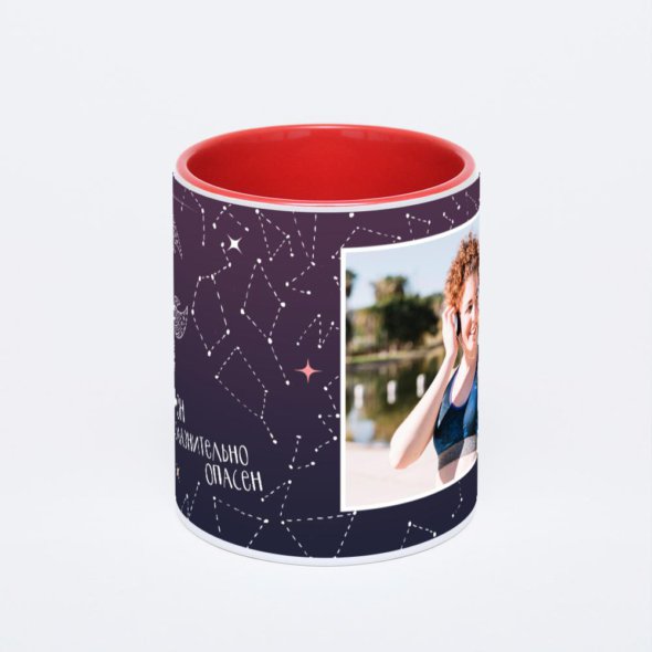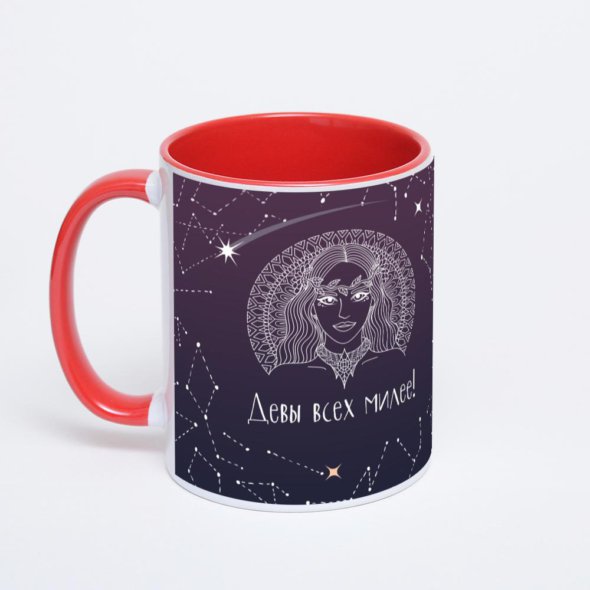 Керамическая кружка окрашенная красным внутри с красной ручкой с нанесением изображения. Кружка с вашим изображением – это уникальный и качественный подарок. Создать её вы можете прямо сейчас в редакторе, добавляя фотографии, стикеры и надписи.
