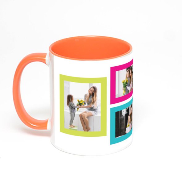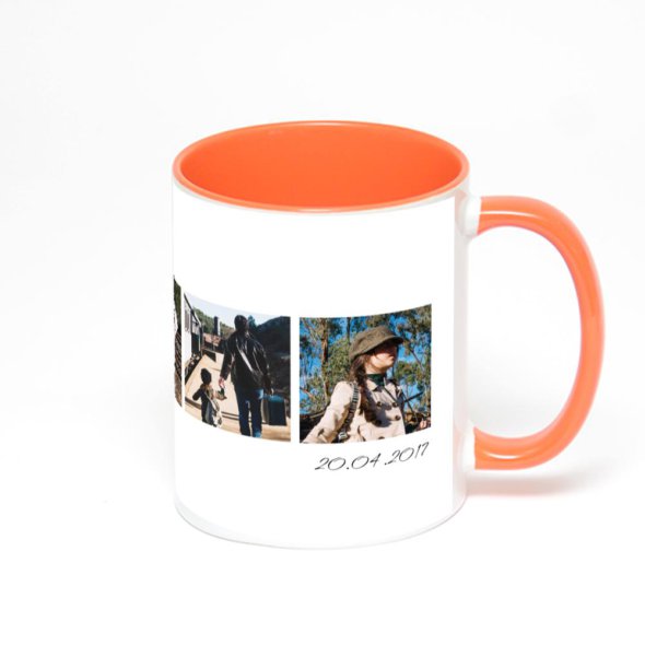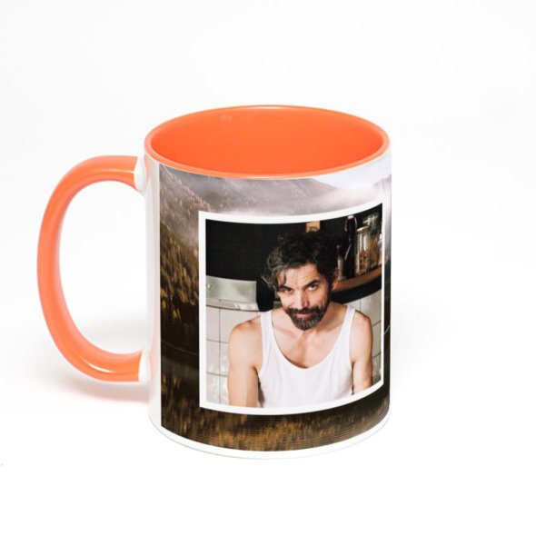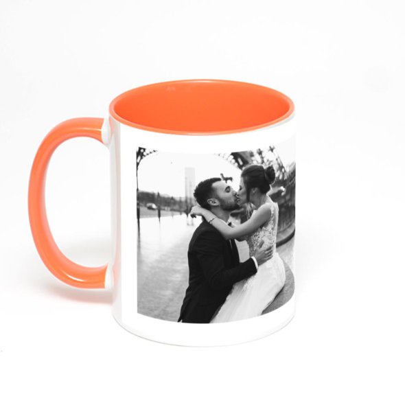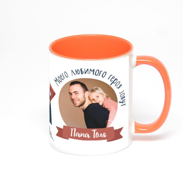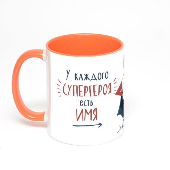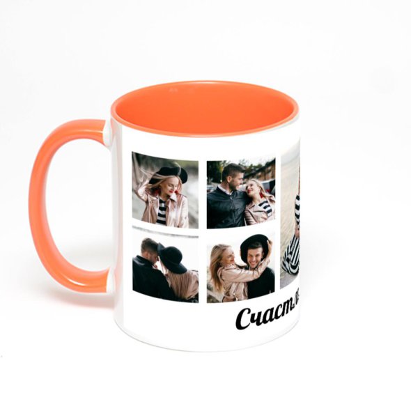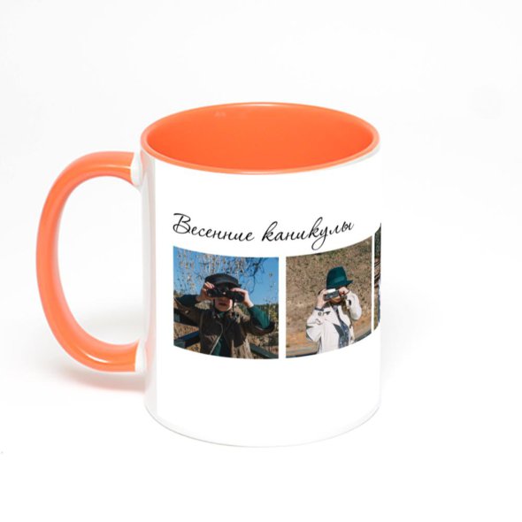 Керамическая кружка окрашенная оранжевым внутри с оранжевой ручкой с нанесением изображения. Кружка с вашим изображением – это уникальный и качественный подарок. Создать её вы можете прямо сейчас в редакторе, добавляя фотографии, стикеры и надписи.
