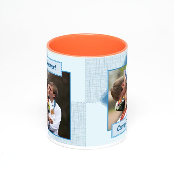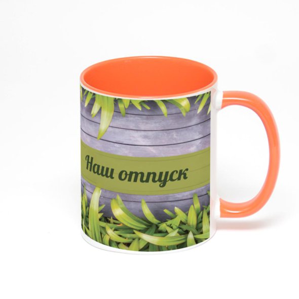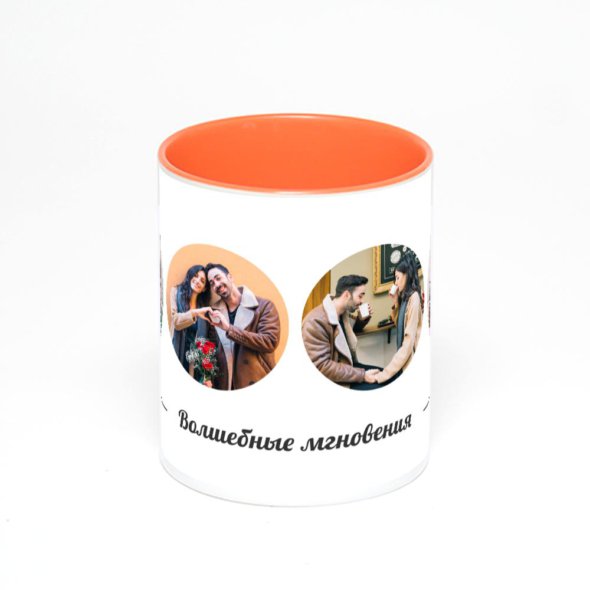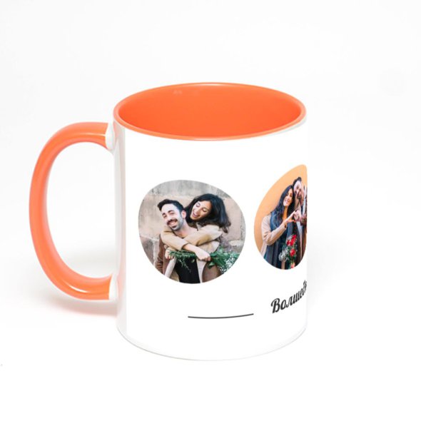 Керамическая кружка окрашенная оранжевым внутри с оранжевой ручкой с нанесением изображения. Кружка с вашим изображением – это уникальный и качественный подарок. Создать её вы можете прямо сейчас в редакторе, добавляя фотографии, стикеры и надписи.